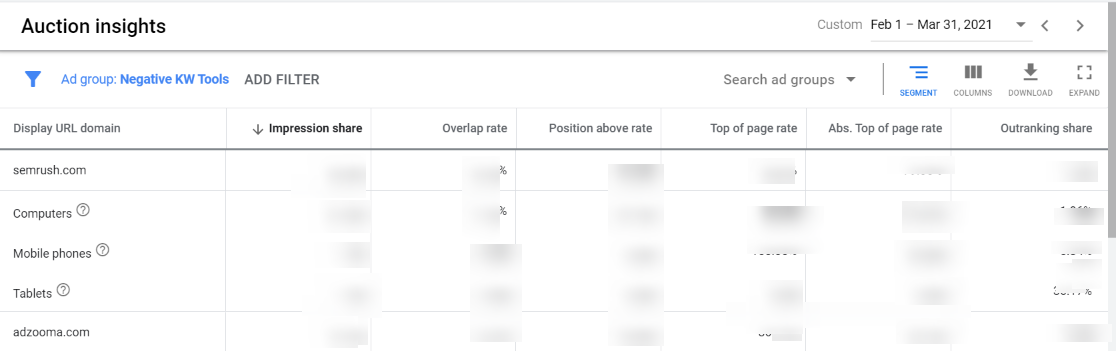 You can view the auction insight report at the campaign, ad group, and keyword levels. Moreover, the following metrics you can use to compare with your competitors. By analyzing these insights, you’ll be able to understand the shortcomings in your PPC strategies and make smarter decisions.